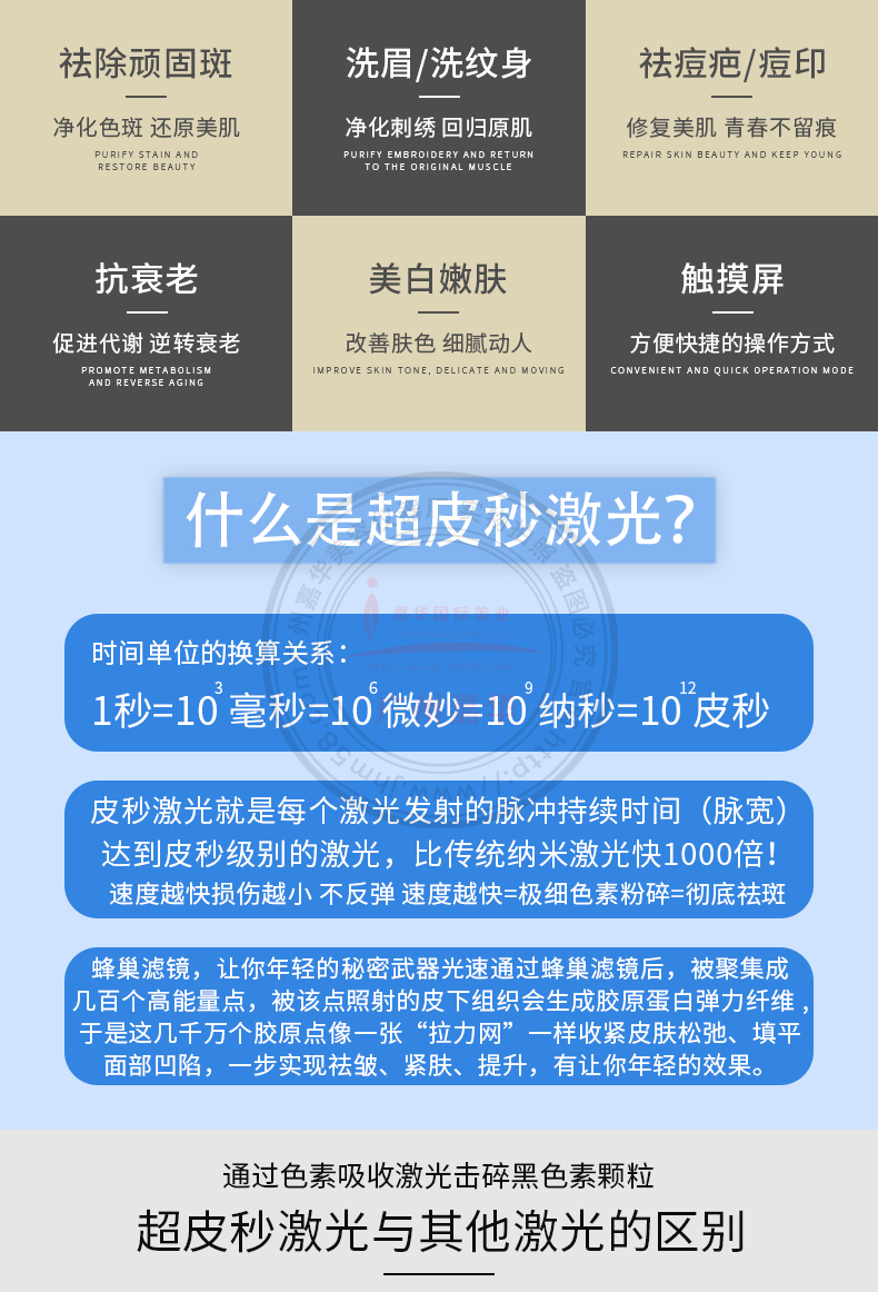 2拒絕反黑,基于皮秒快強的擊碎能力,減小皮膚損傷加速代謝能力。