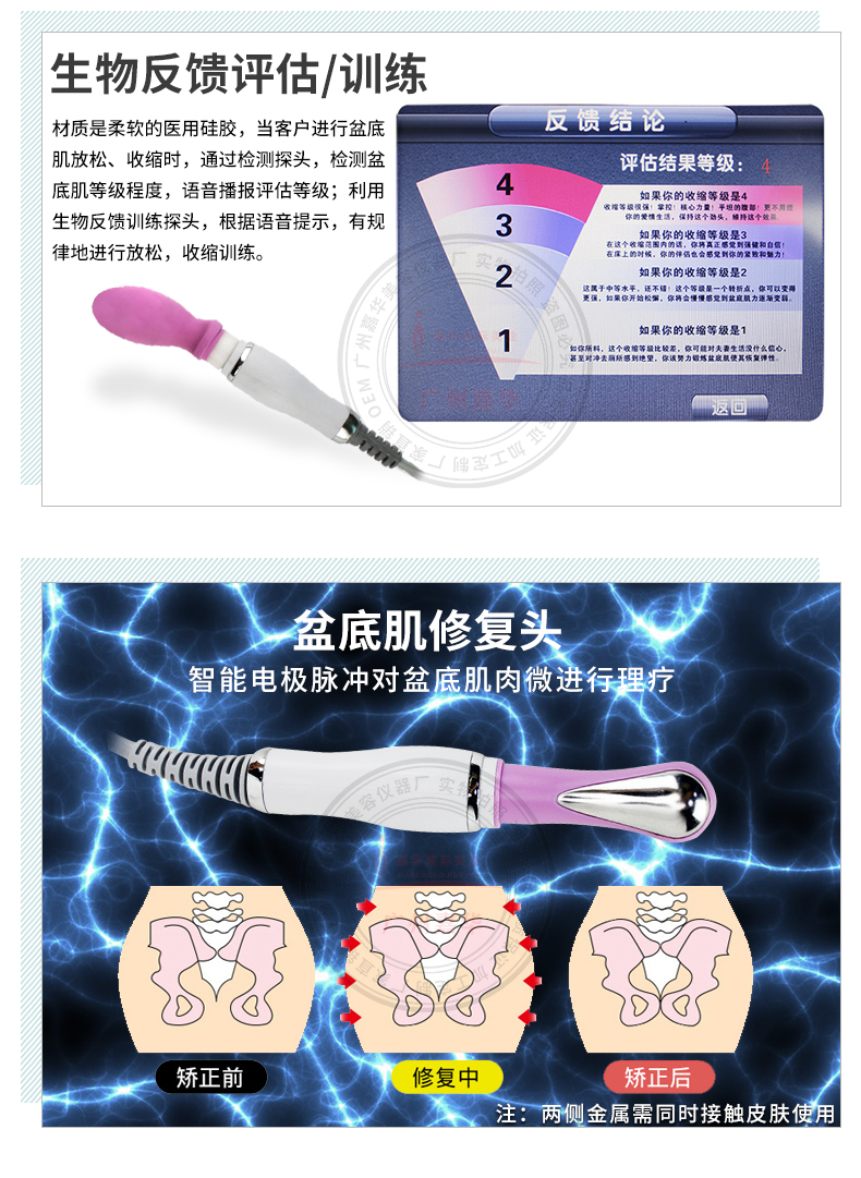 2前沿科技:采用國際標(biāo)準(zhǔn)的Glazer盆底評(píng)估和國際前沿的電刺激療法和生物反饋療法,療效有保證