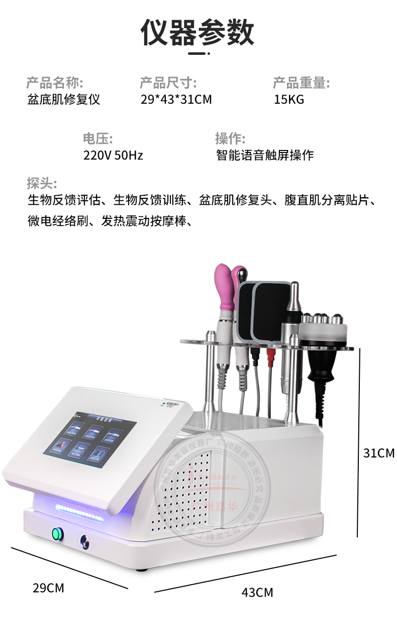 探頭:生物反饋評(píng)估、生物反饋訓(xùn)練、盆底肌修復(fù)頭、腹直肌分離貼片、微電經(jīng)絡(luò)刷、發(fā)熱震動(dòng)按摩棒、