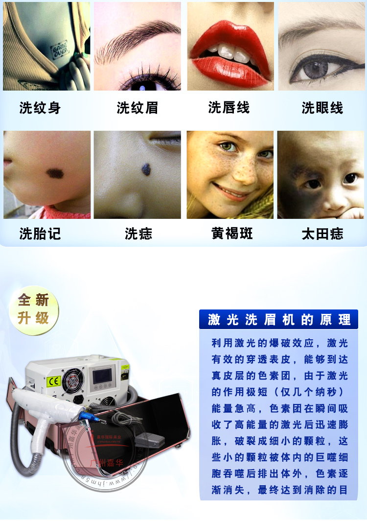 無(wú)創(chuàng)1064,無(wú)創(chuàng)洗眉(深色) 祛斑、洗眉、洗紋身及深色色素,如黑色藍(lán)色