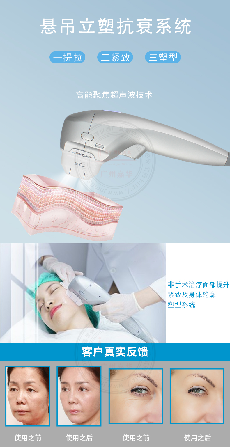 透過(guò)聚焦超聲波能量作用在臉部真皮層及筋膜層