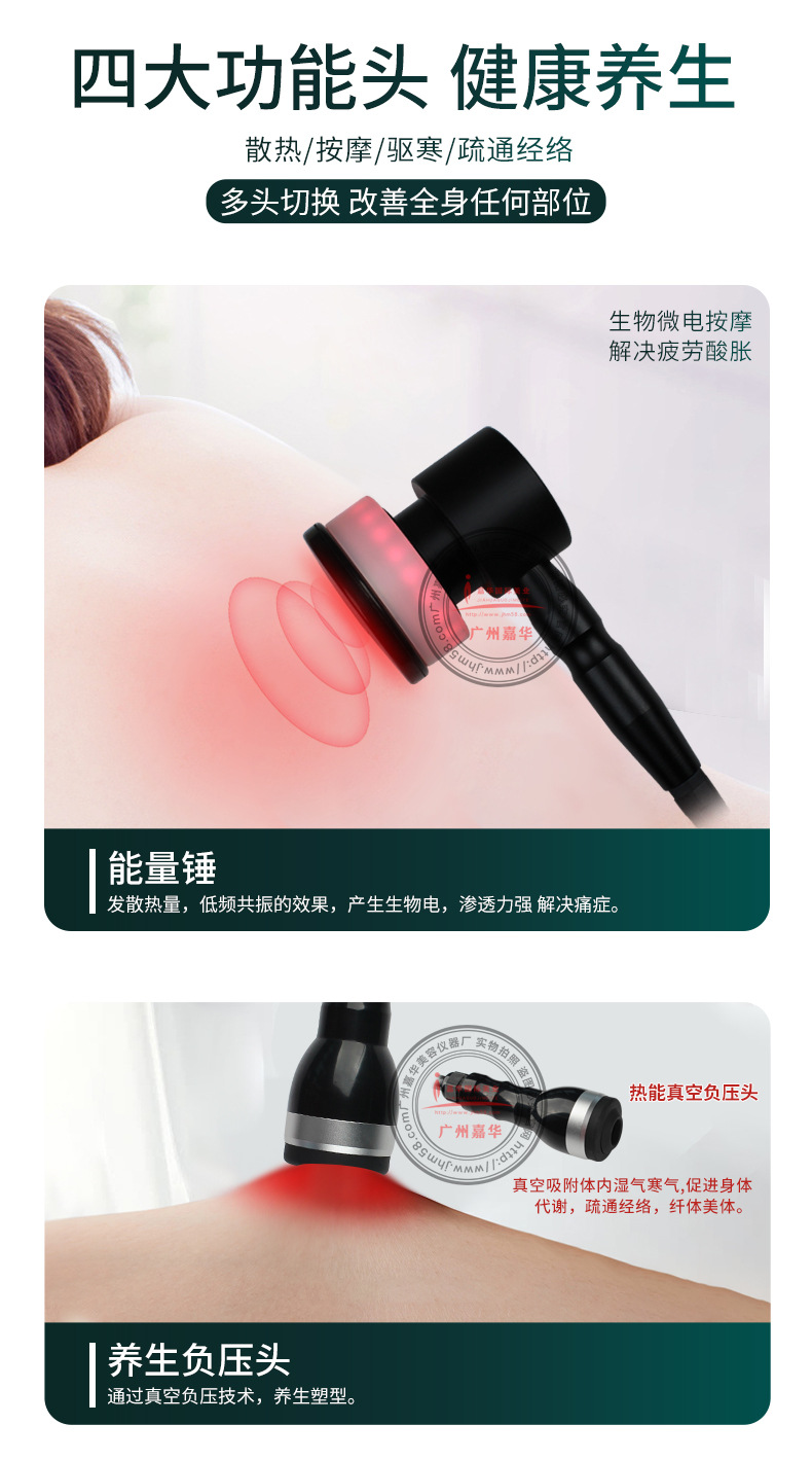 熱能真空負(fù)壓頭:真空吸附體內(nèi)濕氣寒氣,改善人體內(nèi)循環(huán),促進(jìn)身體代謝,疏通經(jīng)絡(luò),纖體美體