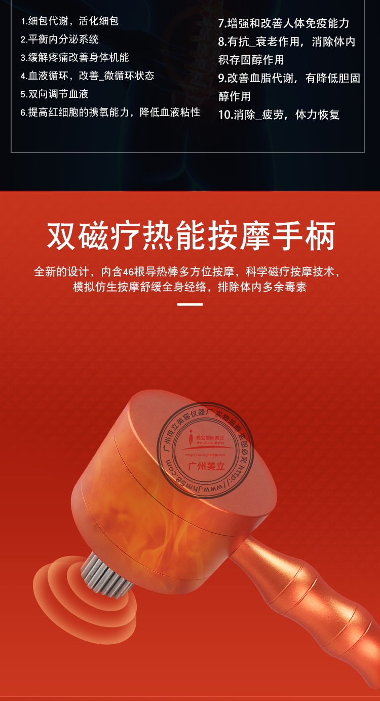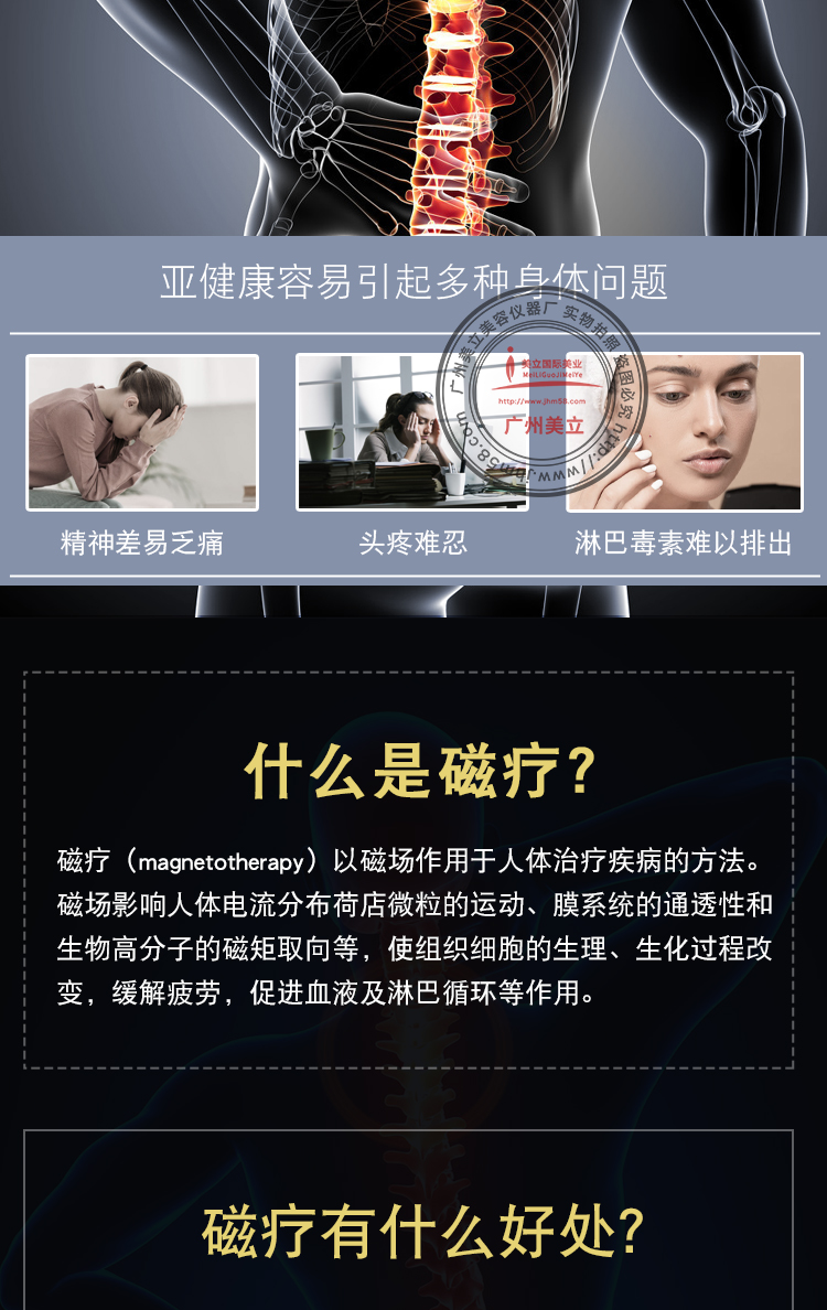 磁波高達(dá)16000高斯的超強(qiáng)磁場,刺激人體穴位到疏通經(jīng)絡(luò)、排毒美顏的目的,同時也達(dá)到有效補(bǔ)充、糾正磁場缺乏的雙效。