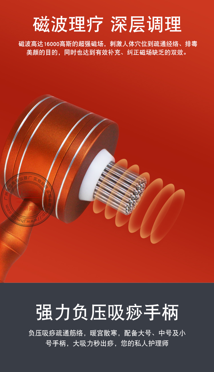 探頭數(shù)量:磁能按摩手柄*2 負(fù)壓探頭*3
